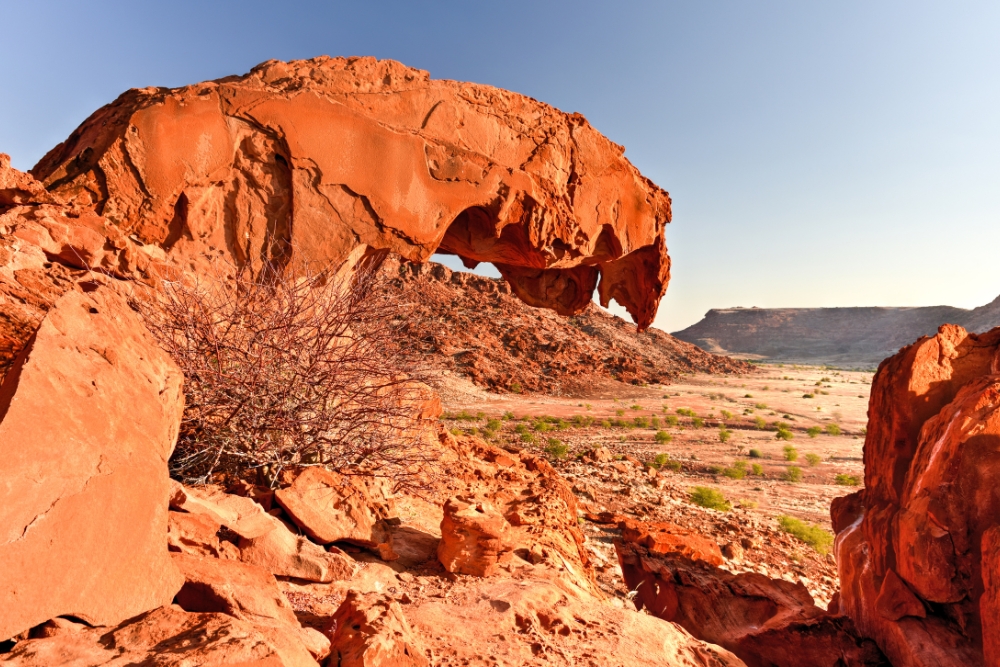 La giornata sarà dedicata alla scoperta di questa magnifica regione che offre panorami mozzafiato. Visita dell’area di Twyfelfontein, con la più grande collezione di incisioni rupestri dell’Africa Australe. Si visiterà anche la formazione geologica del Burnt Mountain, l’affioramento di roccia vulcanica nominata Organ Pipes e la Petrified Forest. Il pranzo è incluso in corso d’escursione. Cena, pernottamento e prima colazione a Ozondjou Tented Camp.