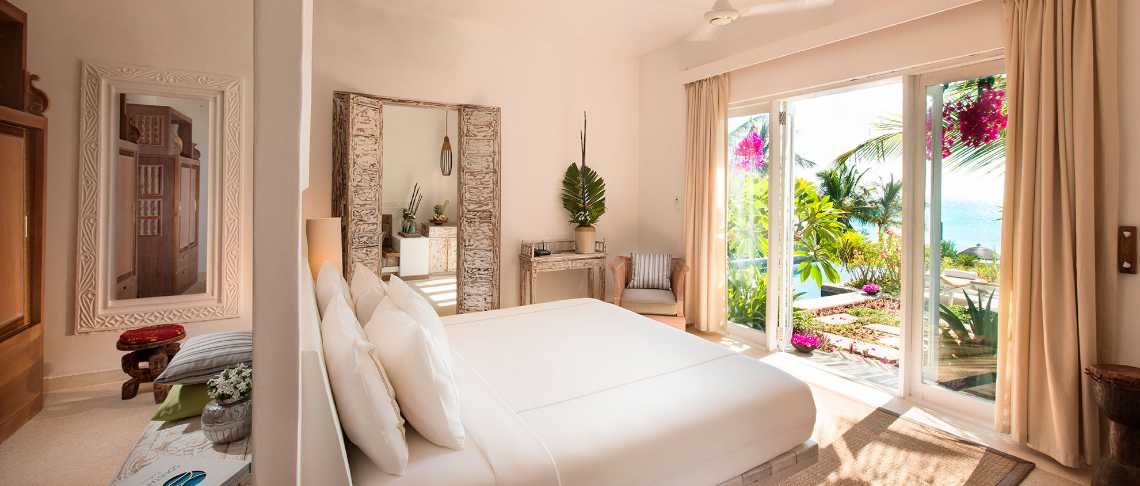 L'hotel offre alloggio in 30 ville, tutte con vista mare, dallo stile essenziale ma al tempo stesso elegante. Le 26 Beach Villas si dividono in due tipologie: 8 Prestige Beach Villa con una camera da letto e corte esterna e 18 Superior Beach Villa con camera da letto e living room. Lungo la spiaggia si trovano due Ambassador Villas, con 2 camere da letto ciascuna, soggiorno, sala da pranzo, patio esterno e piscina privata a sfioro, una Royal villa con 3 camere da letto ed una Presidential Villa con 2 camere da letto e una piscina privata ciascuna.