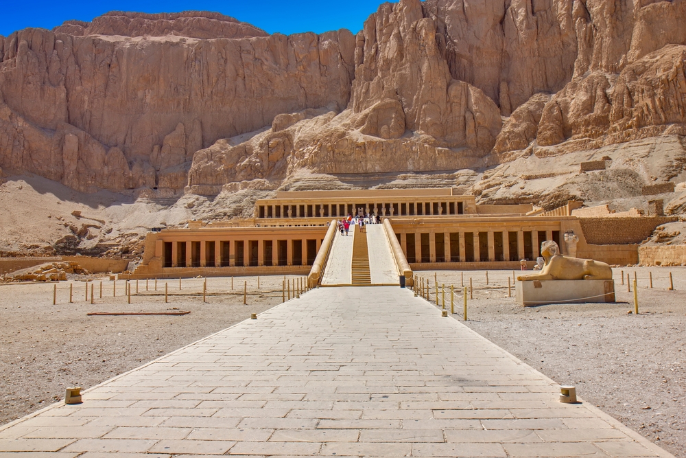 Visita del tempio della regina Hatshepsut, considerato uno dei capolavori dell'arte egizia, che rappresenta un importante esempio di come le strutture religiose fossero integrate con il paesaggio naturale. Sulla via del rientro si ammireranno le statue colossali gemelle di Memnon.