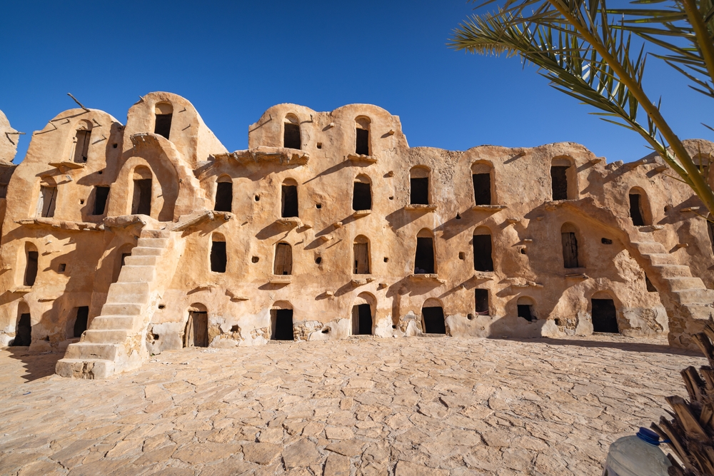 Dopo la prima colazione, partenza per Tataouine, nota per il suo tradizionale mercato di prodotti artigianali e l’opportunità di assaporare i deliziosi dolci locali chiamati “corni di gazzella”. Proseguimento verso Ksar Ouled Soltane, uno dei granai meglio conservati del sud della Tunisia, con le sue “Ghorfas” sovrapposte fino a 4 livelli, utilizzate in passato come magazzini per conservare i prodotti agricoli dopo il raccolto.
